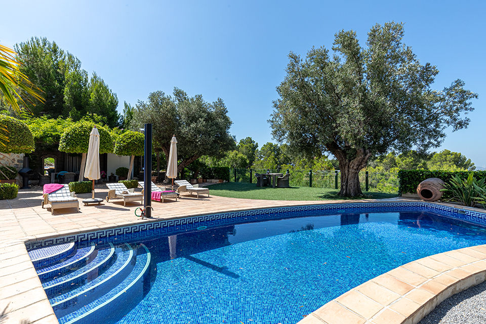Komfortables Ferienhaus in Altea, an der Costa Blanca, Spanien mit privatem Pool für 8 Personen. Das Haus liegt in einer ländlichen, residentiellen und bergischen Umgebung und etwa 4 Km entfernt vom Strand von Playa la Olla.
