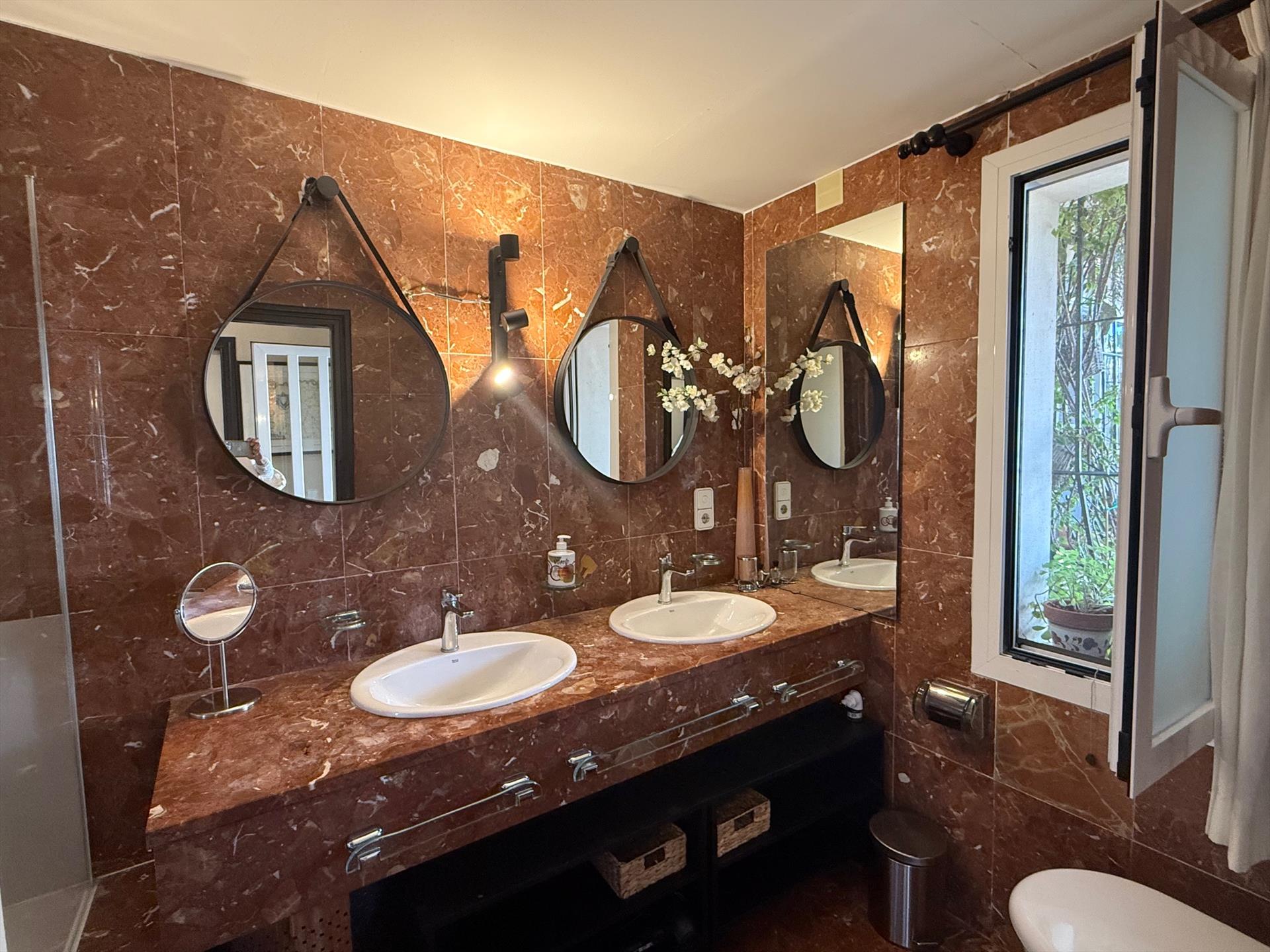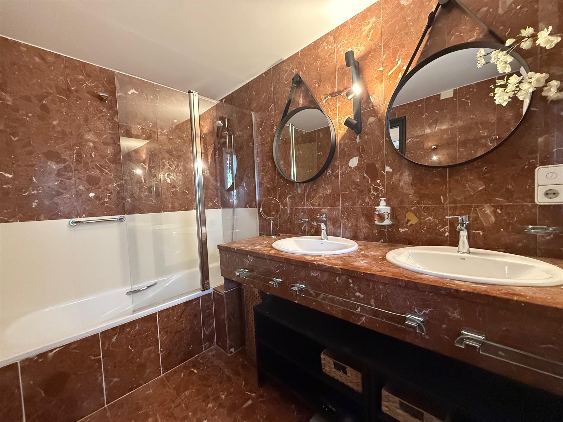 • Eigenes Bad mit Doppelwaschbecken, Badewanne/Duschkombination und WC