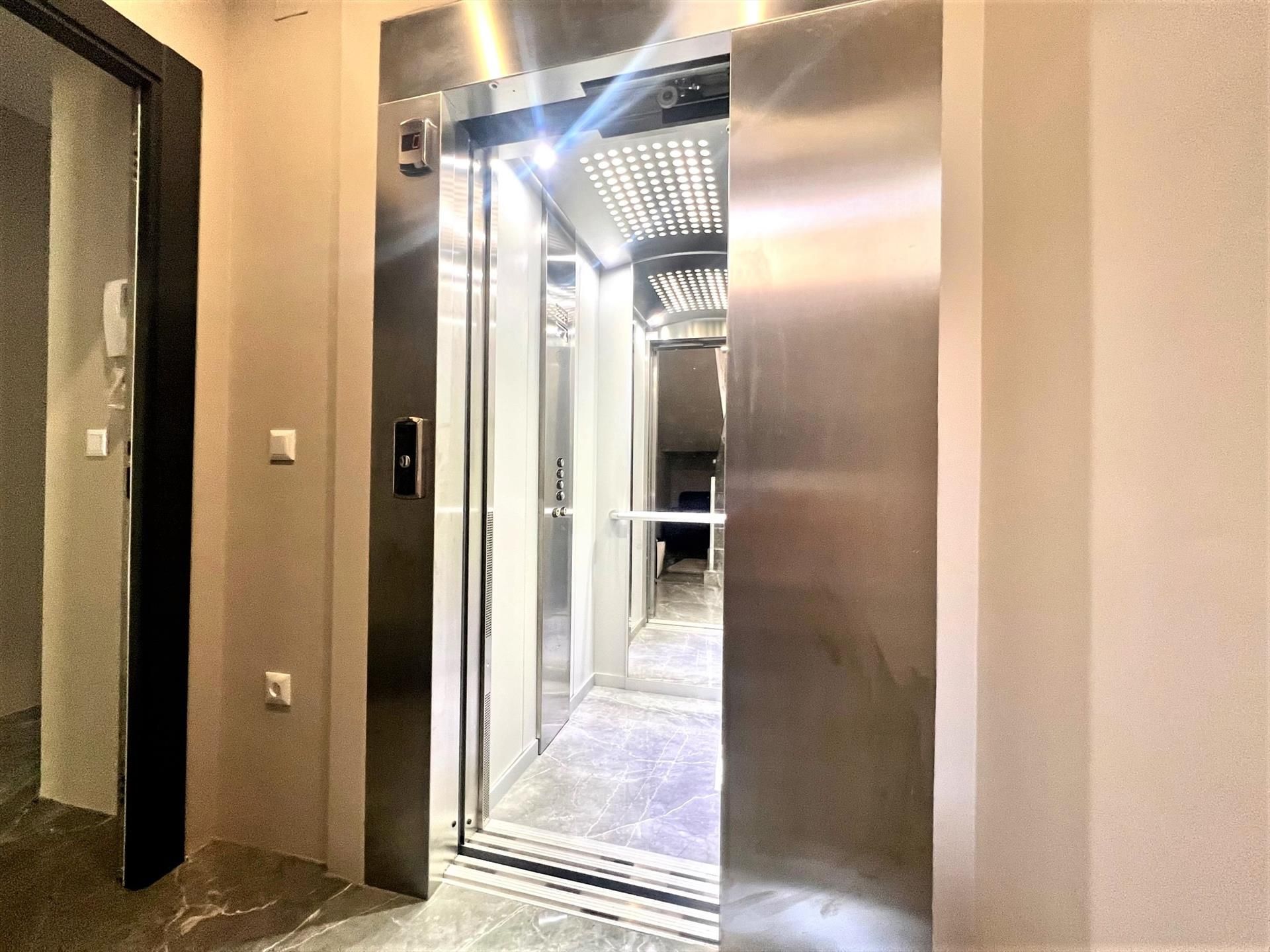Zwei autarke Wohneinheiten (eigene Küche, eigene Bäder, eigene Terrasse), die durch einen Aufzug (und eine Treppe) verbunden sind, können von je 4 Personen genutzt werden (je 2 Schlafzimmer).