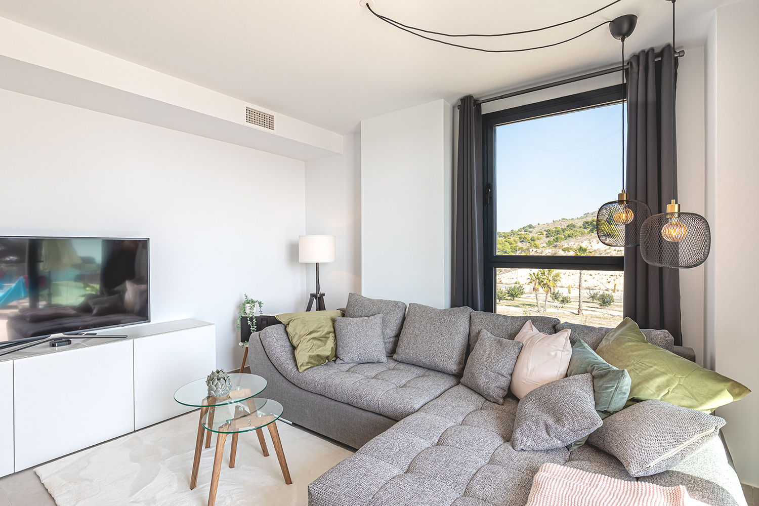 - Wohnzimmer mit Klimaanlage und Fernsehen