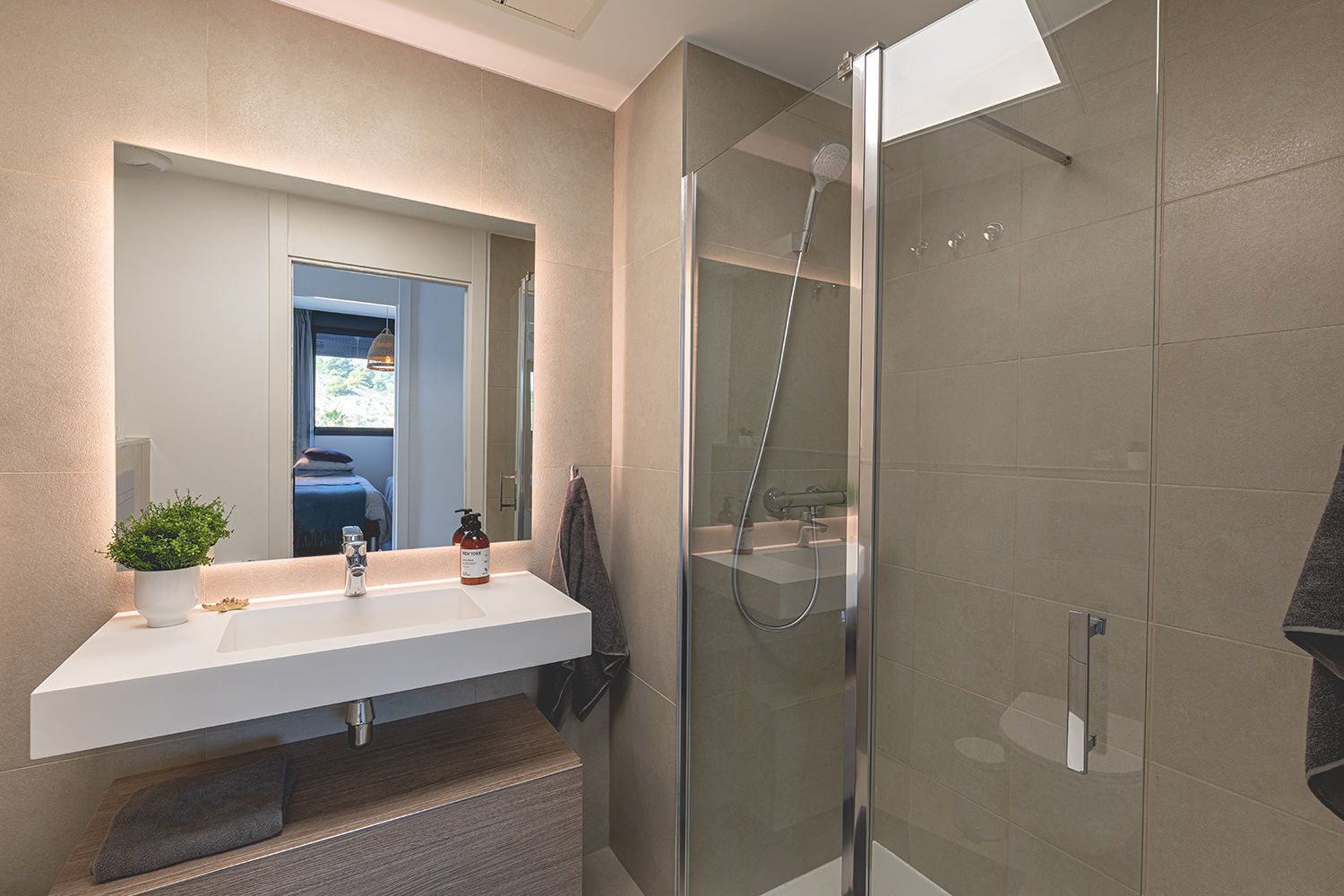 Schlafzimmer und Badezimmer