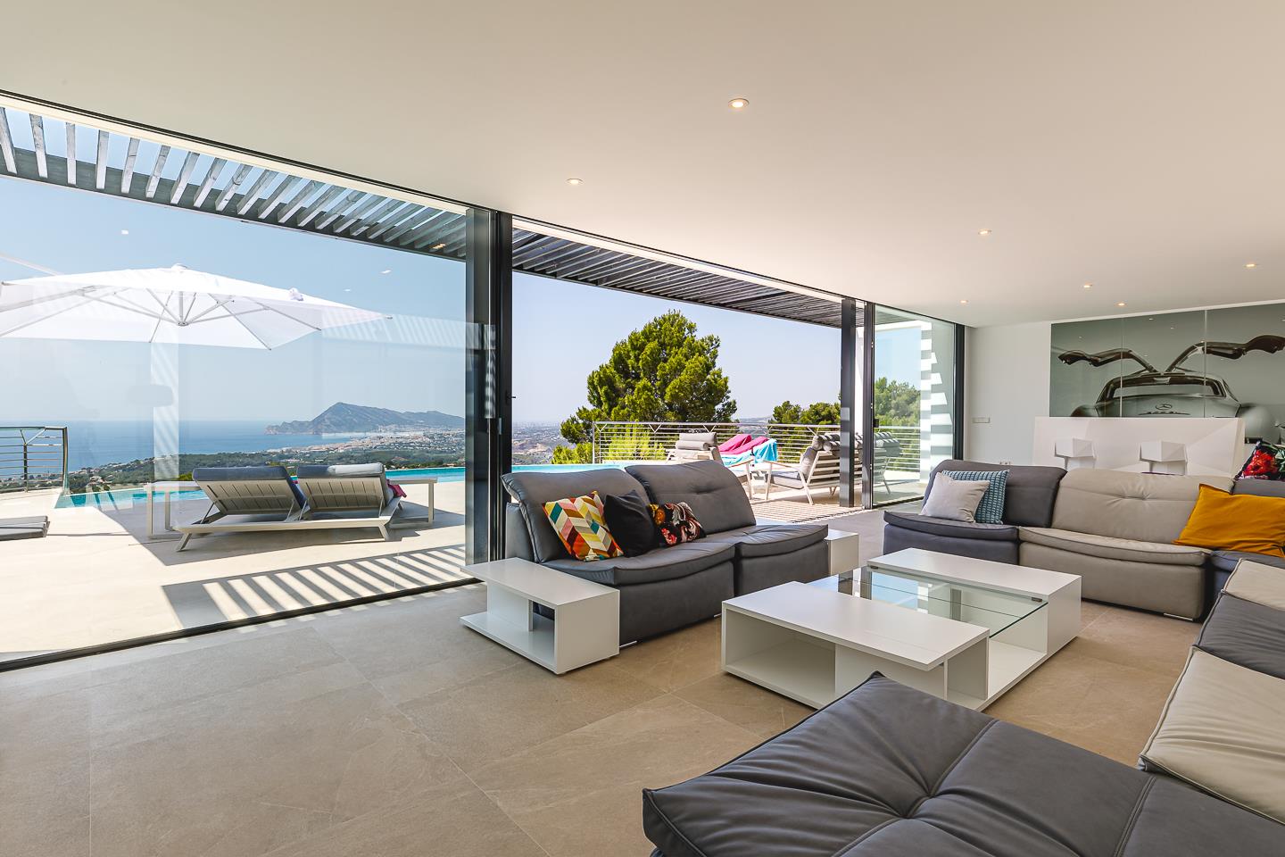 Lovely and luxury villa with magnificent sea views and private pool in Altea, Costa Blanca, Spain for 10 persons. The villa is situated in a coastal, hilly, wooded and residential area and at 3 km from Playa de la Olla beach.