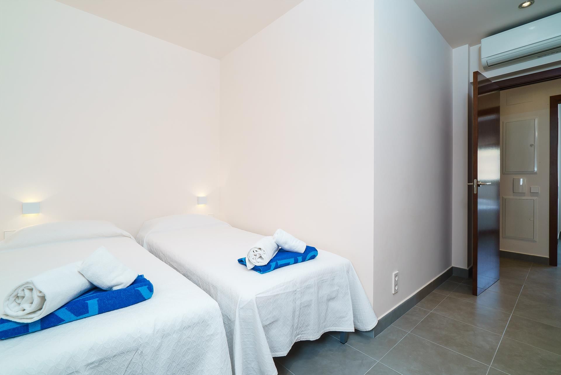 • bedroom with air conditioning and 2 single beds (measuring 200 by 90 cm)
