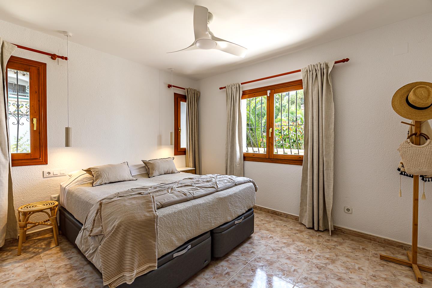 Escape to sunny Moraira, where Villa Bajo el Sol awaits. This spacious villa comfortably accommodates up to 8 guests, offering 4 bedrooms and 4 bathrooms across two floors. Recently renovated with modern design, the villa offers a private pool, a BBQ, outdoor lounge areas and is situated in a scenic coastal residential area.