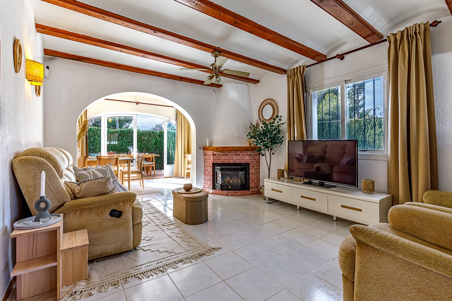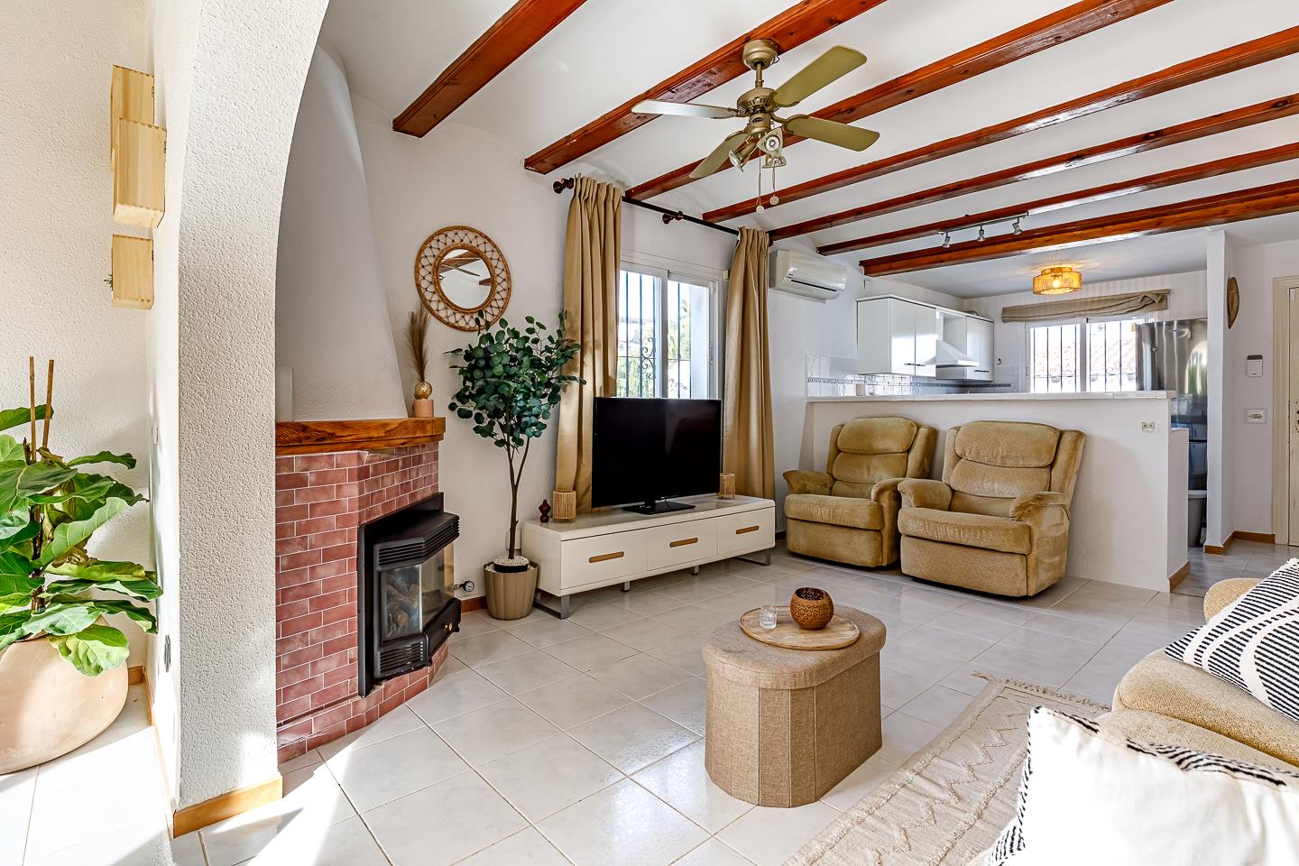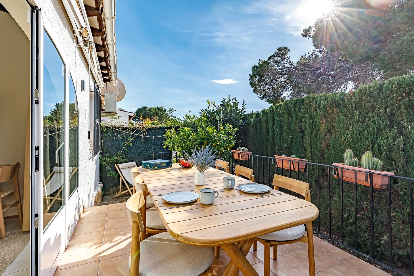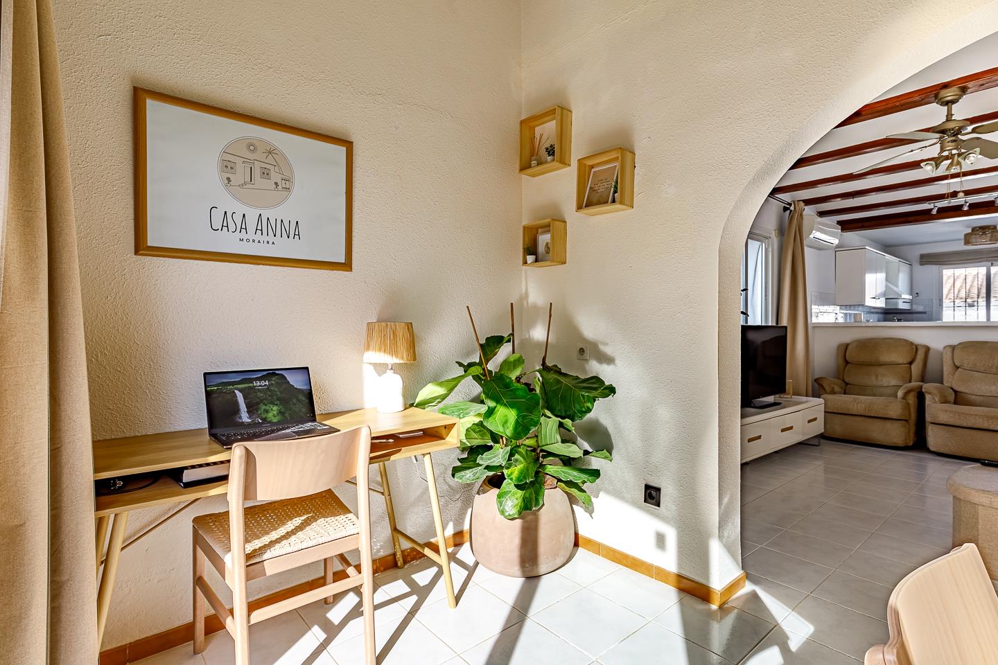 Wonderful and cheerful holiday home in Teulada, Costa Blanca, Spain with a communal pool for 4 persons. The house is situated in a coastal, hilly, and residential area, close to a golf course and 2 km from Benissa/Moraira beach.