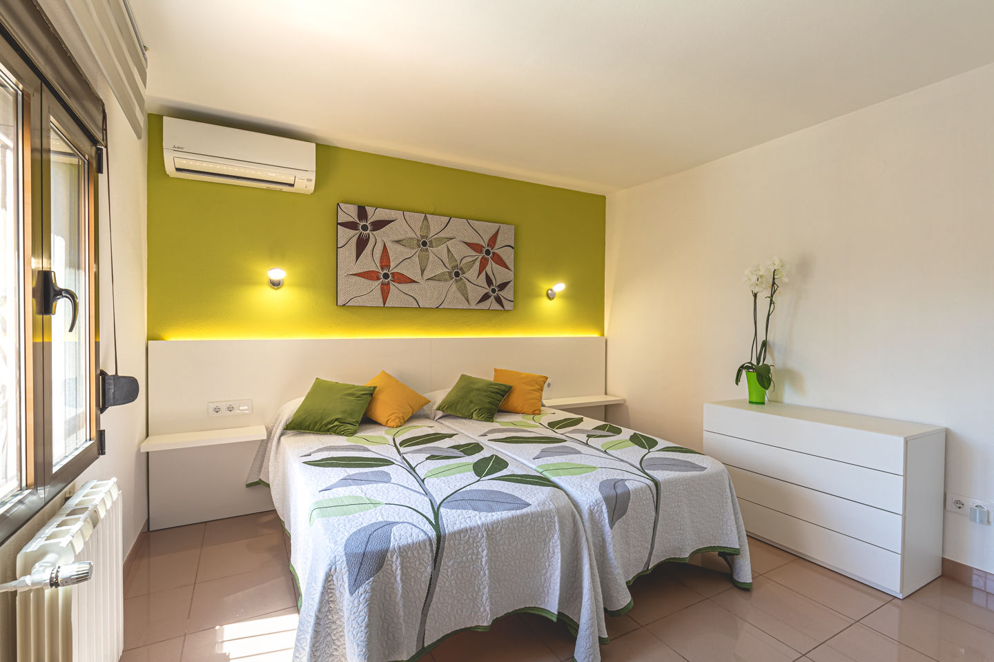 • chambre à coucher climatisée avec lit double (de 190 x 140cm)