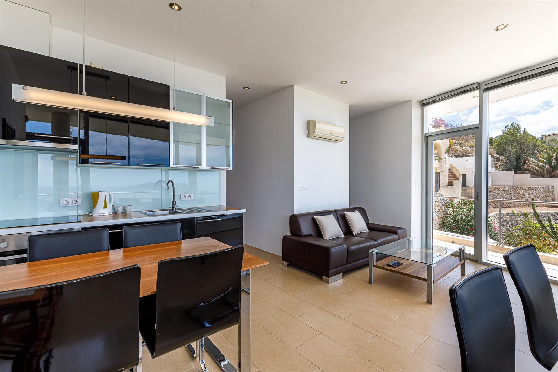 De woning heeft verscillende apartments met total 4 slaapkamers en 4 badkamers en een groot woonkamer met groor keuken, een Klein keuken met woon eetkamer. De accommodatie biedt privacy, een mooi zwembad en prachtig uitzicht op de baai, de zee, het dal en de bergen. Het comfort en de nabijheid van het strand, gelegenheden om te winkelen, mogelijkheden om te sporten en uitgaansgelegenheden maken dit een ideale vakantiewoning om uw vakantie te vieren met familie of vrienden.