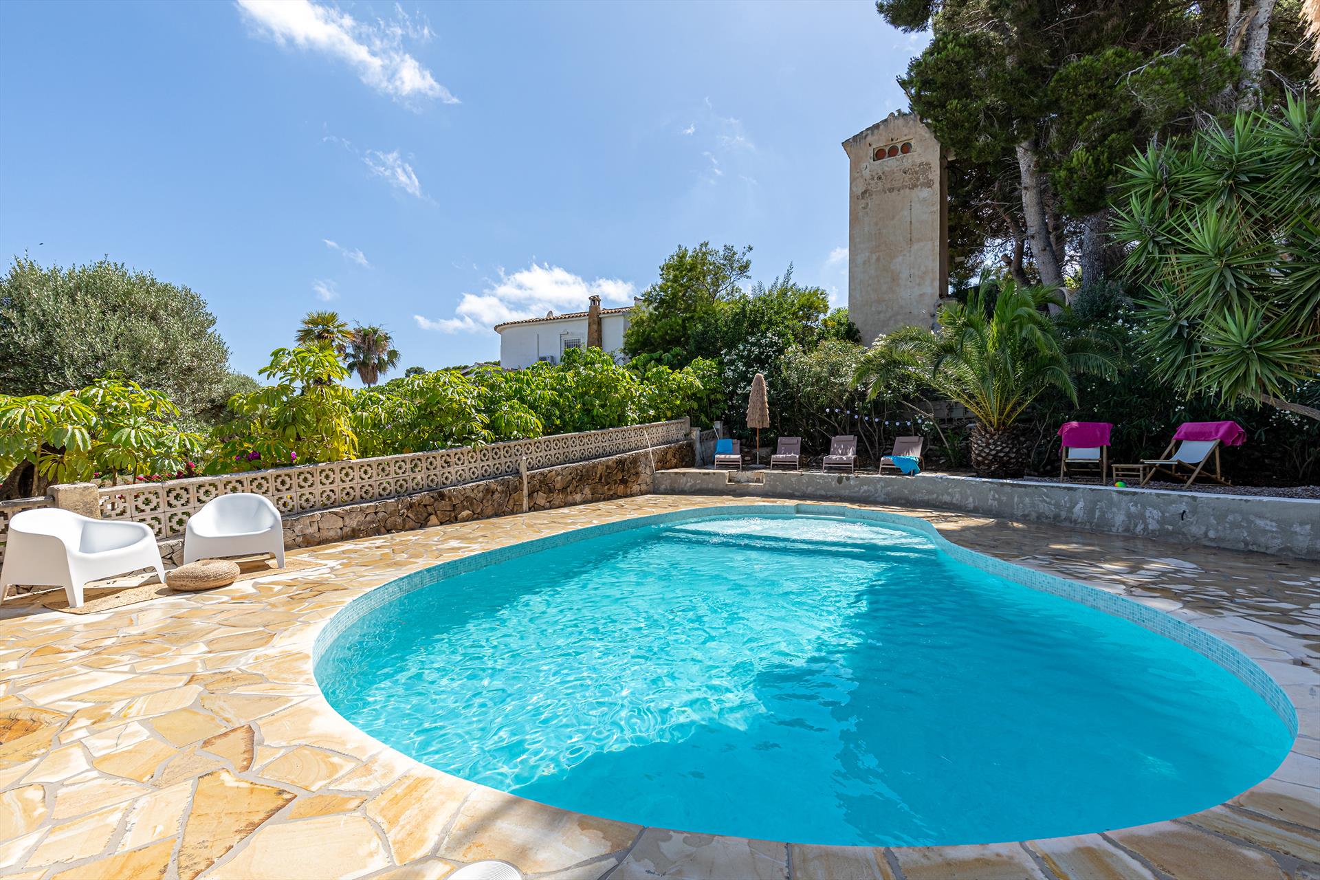 De villa heeft 3 slaapkamers en 3 badkamers, verdeeld over 2 woonlagen. De accommodatie biedt een mooie tuin met gravel en bomen, een prachtig zwembad en uitzicht op de baai, de baai, het dal en de bergen. Het comfort en de nabijheid van het strand, gelegenheden om te winkelen, mogelijkheden om te sporten en uitgaansgelegenheden maken dit een geschikte villa voor uw vakantie in Spanje met familie of vrienden.